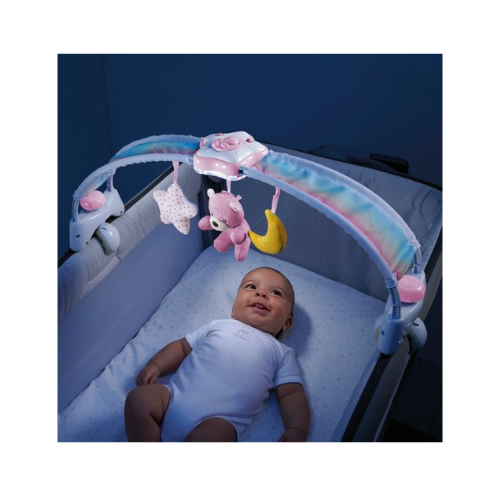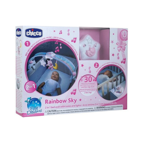 Wat zal je kindje heerlijk ontspannen en in slaap vallen met de Rainbow Sky Speelboog van Chicco! Deze 2-in-1 speelboog is zowel als bedboog en als los nachtlampje te gebruiken. Hij heeft een mooi en rustgevend regenboog design die zorgt voor een magische sfeer en 3 zachte knuffeltjes/speeltjes waar je kindje naar kan kijken en grijpen.