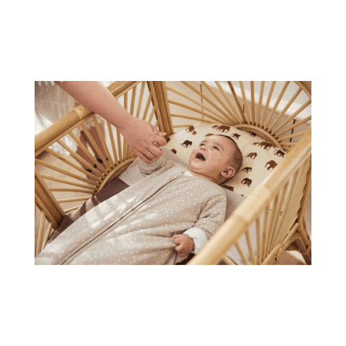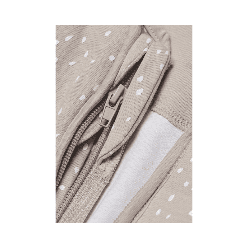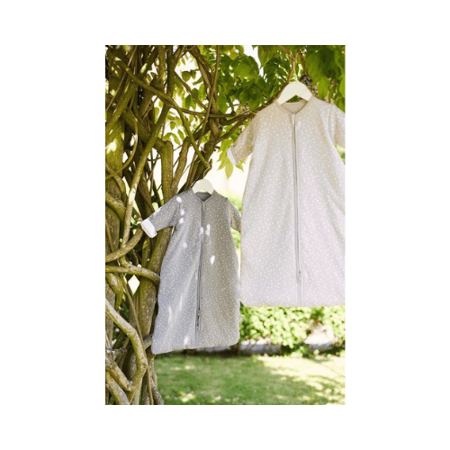 Deze slaapzak heeft een rustige stippenprintje in twee kleuren. Ga je voor de Nougat of voor de grijze variant?