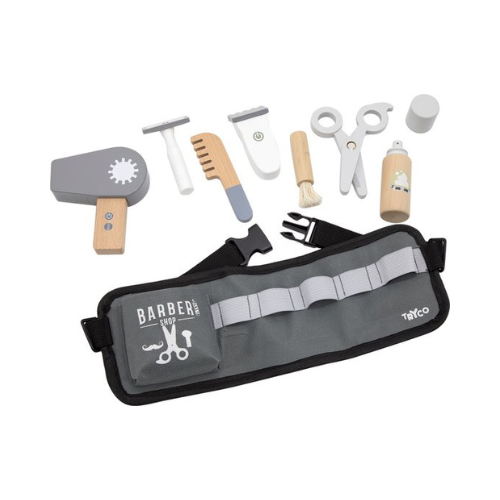 Wat puntjes bij laten knippen? Of de baard laten trimmen? Met deze Tryco houten barberset / kapperset kan het allemaal! Je kleine kan los gaan en zorgen voor de prachtigste creaties!