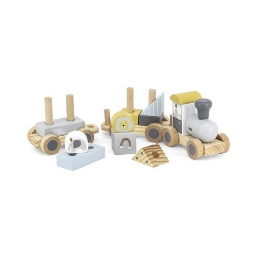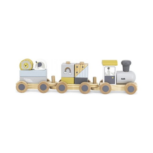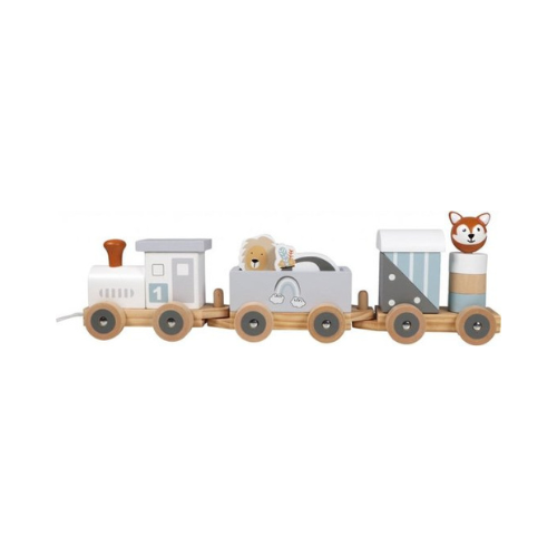 De houten trein is geschikt voor kindjes vanaf 10 maanden.